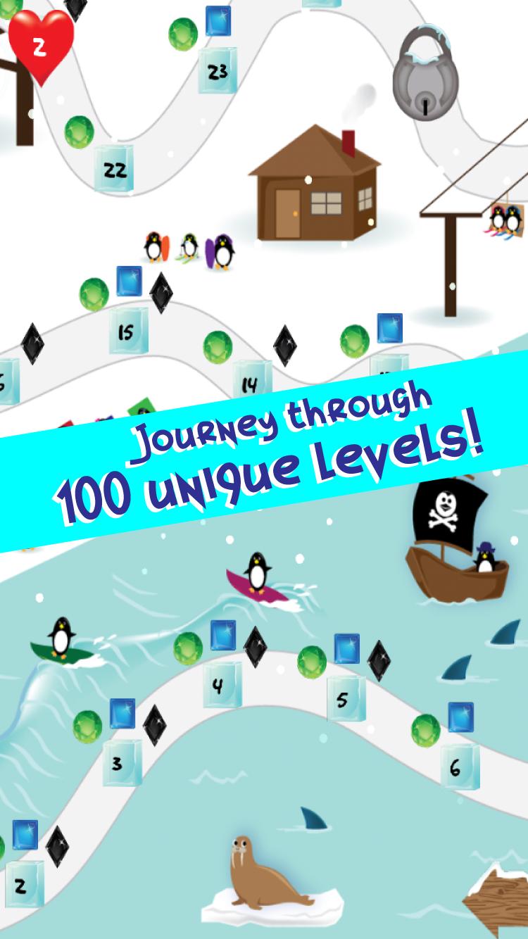 Jouez à travers 100 niveaux uniques et de plus en plus difficiles dans l'histoire, ou combattre pour des scores élevés et des points polaires de survie! Dépensez vos points polaires à personnaliser et à déverrouiller des personnages, ou à des power-ups pour vous aider dans votre quête pour atteindre le palais du palais!